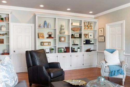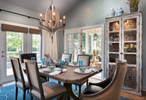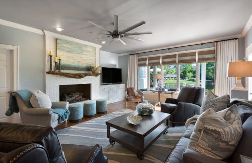 Pet-friendly and cozy was the aim of this home. Rugs that can take abuse along with furniture made for “lolling” was required! Yet, the homeowner requested simplicity and of course, elegance. Is it possible to have all of these things in one space? You bethcha and here’s how: We started with a soft gray/blue color palette to keep things on the simple side. Utilizing natural materials such as a petrified tree to create a mantle, we decided less was more, but that utilizing less meant that everything had to be important. This mix of natural materials along with the use of fibers such as “crypton” for seating and synthetic rugs that still look great was key in achieving success in this interior. To complement the overall feeling, soft and simple linen draperies were incorporated even though the homeowner was initially adamant that they didn’t want any window treatments. We felt so strongly about the need for them in order to have a cohesive complete look that I was actually willing to take the risk if they didn’t like them! Of course, once installed, the homeowners were thrilled with how important the draperies were to the overall look and feel of the space. These clients sent me frequent checkmark texts during the whole process. It was very gratifying to receive a giant RED check at the conclusion of this project!