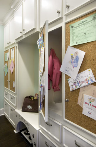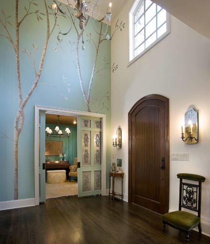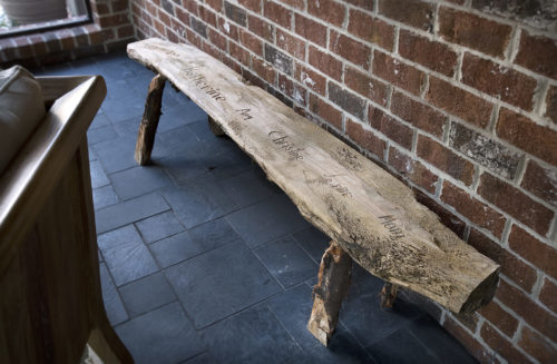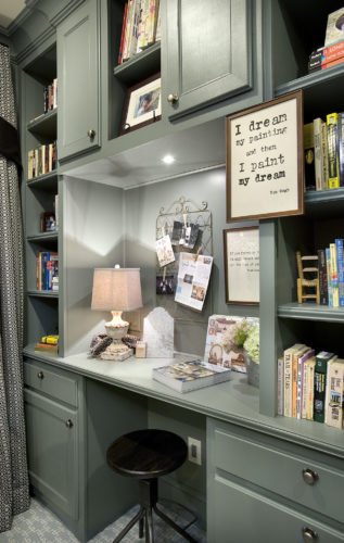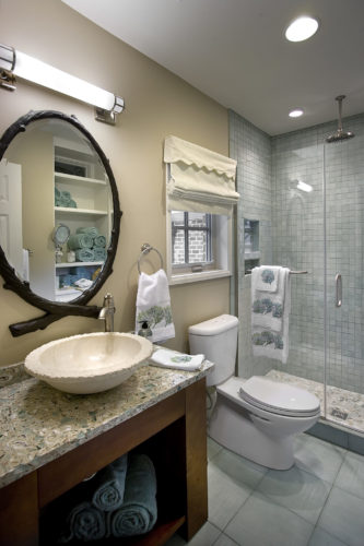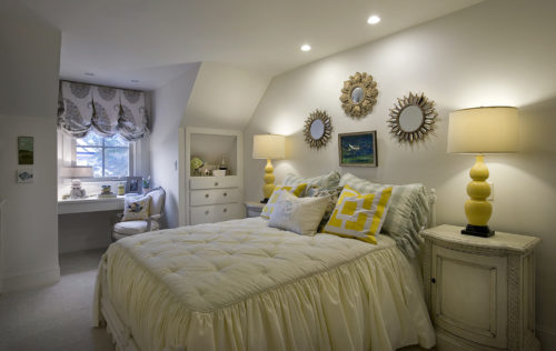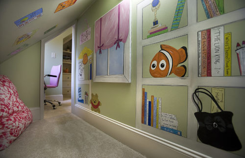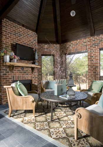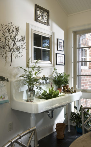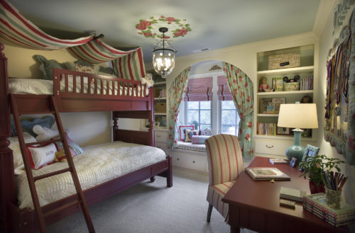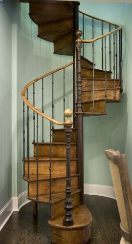 This home was renovated to create the perfect haven for a family raising four girls. Each child was involved with helping design their own spaces so that each reflected the unique personality of the girl who would be growing up there. In addition, the home was designed with as much of a use of “green” certified materials as possible. The spiral staircase was imported from Europe and was the inspiration for the project. Notice the bench on the back porch. Unfortunately, a tree had to be cut and removed to be able to allow space for the master suite. In order to reuse the tree, a bench was made from its trunk and the family carved their names right on top!
